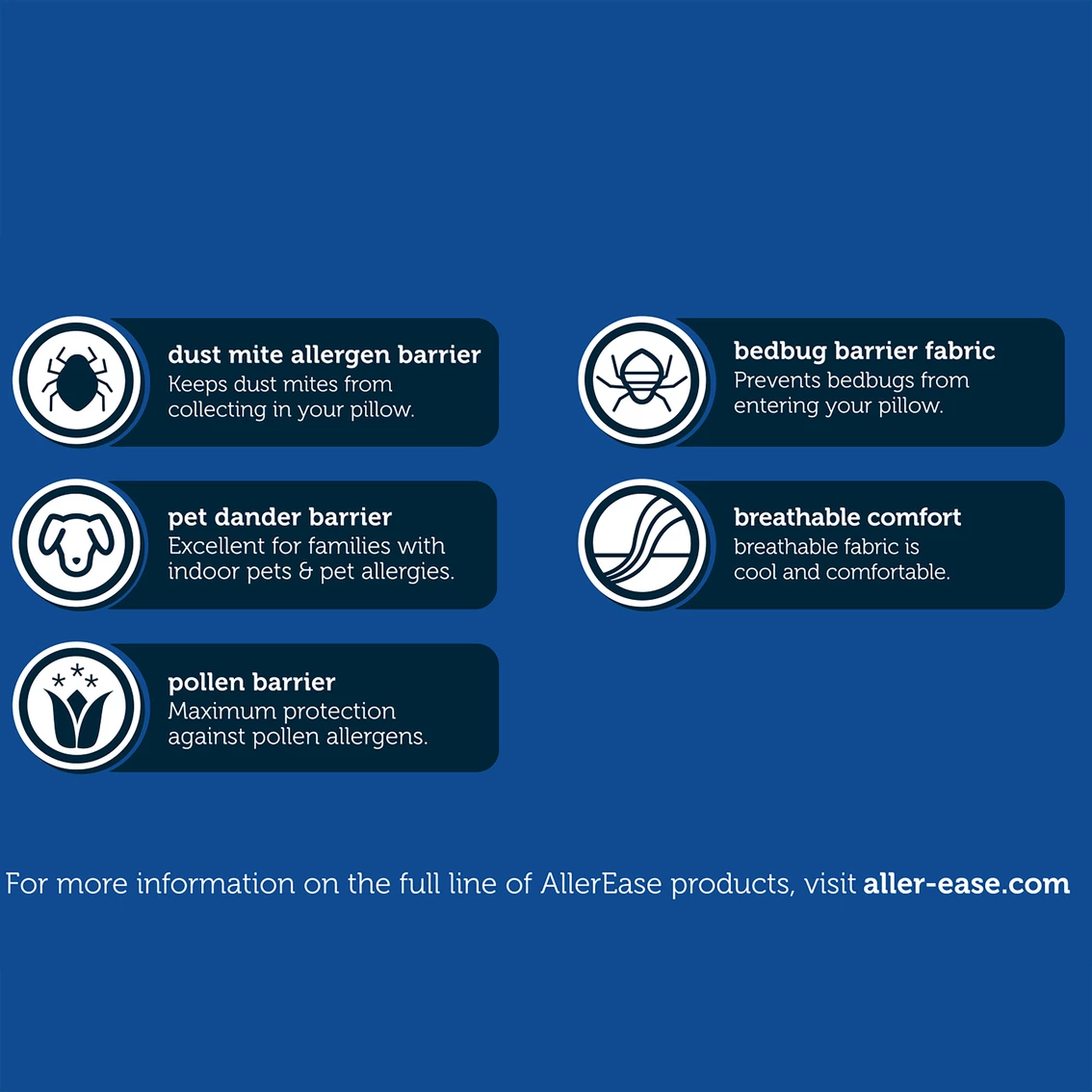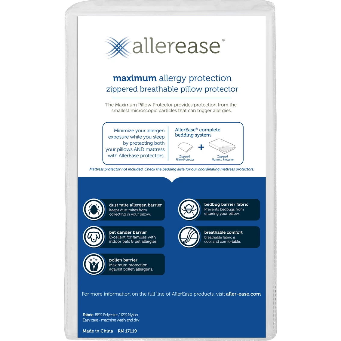 The AllerEase Maximum Allergy Protection Zippered Breathable Pillow Protector is constructed with a 100% breathable fabric designed to keep you cool and comfortable while blocking out dust mites, pollen, bed bugs, pet dander and other household allergens that can trigger allergies. This pillow protector is made with a comfortable soft top fabric that fully encases your pillow with a durable, zippered closure that won’t alter the feel of your pillow. This pillow cover is a great choice for adult bedrooms, children’s bedrooms and dorm rooms.