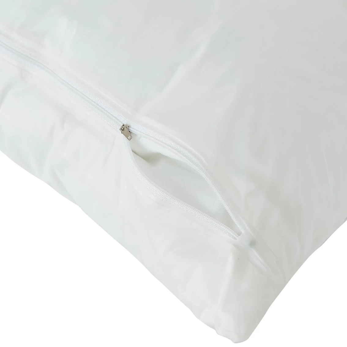 This Bargoose zippered waterproof vinyl pillow cover fully encases your pillow and provides premium waterproof and dust allergen protection for your pillow. A rust-proof, self-locking zipper ensures closure. The pillow cover is easily wiped clean with a damp cloth. Includes two.