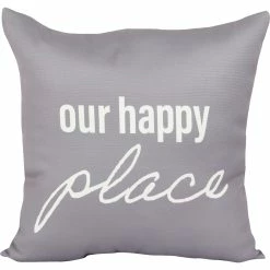 This cute and fun poly canvas cushion pillow from Haven by Nemcor is the perfect cozy decor piece for any room in your house or cottage! It displays the phrase “our happy place” on the front. Model: 92884.