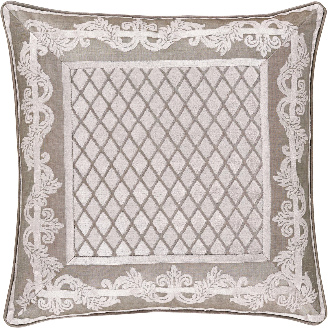 The 20 in. square Bel Air Sand Decorative Throw Pillow from J. Queen New York includes a diamond fabric framed with a scroll border. Pillow reverses to the diamond coordinating fabric and is finished with a fine solid cord. Style: 226012120SQ.