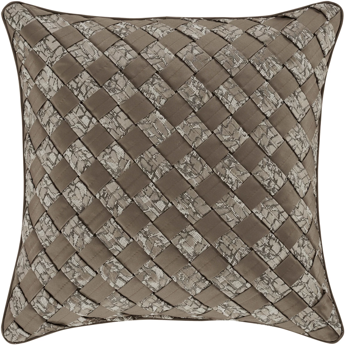 The Cracked Ice 18 in. Decorative Pillow from J. Queen New York is constructed into a grid pattern by hand weaving alternating strips of fabric. This one of a kind accent is sleek and contemporary and a great addition to this collection. Style: 249406618SQ.