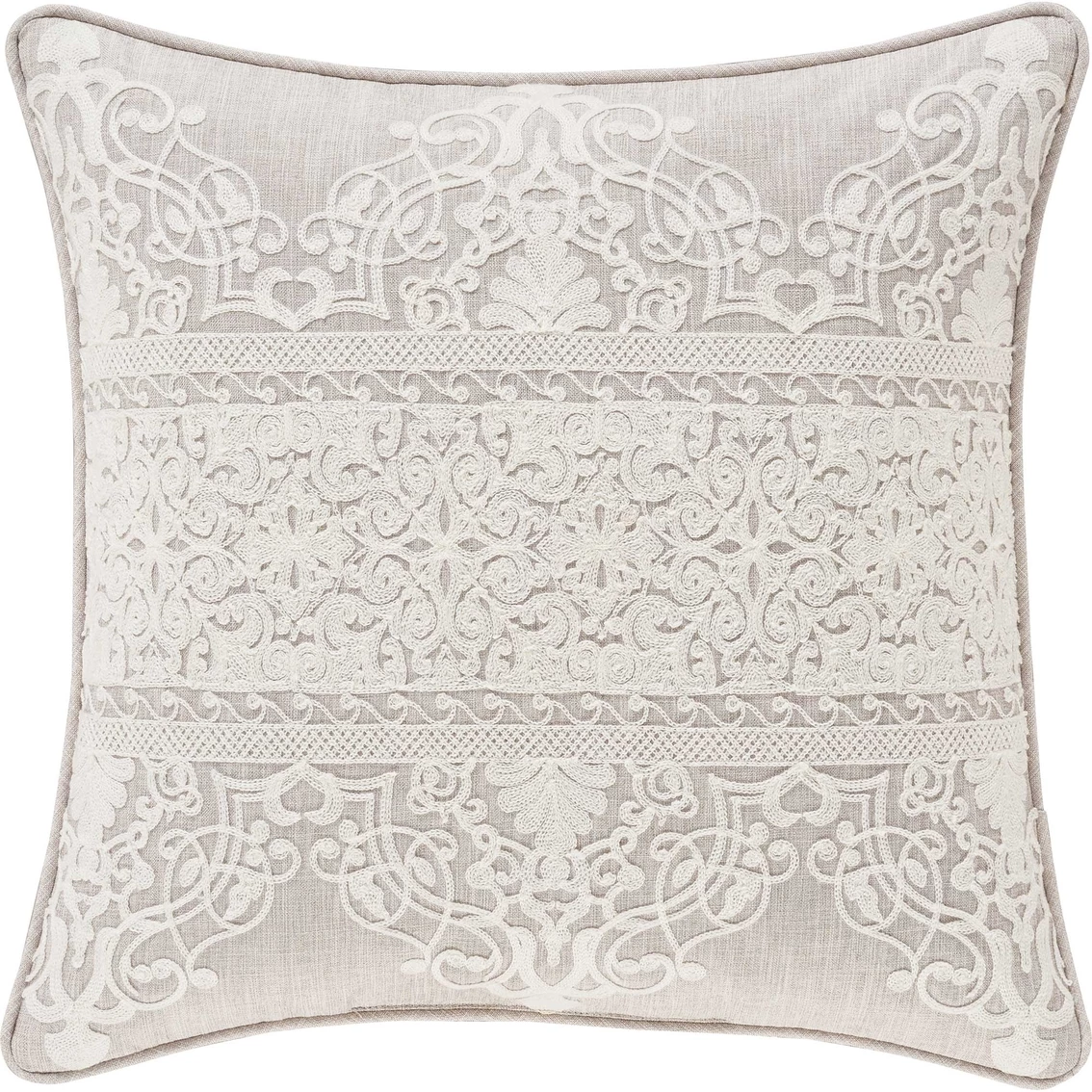 The 20 in. Decorative Pillow from J. Queen New York have the same cream colored embroidered damask on the face as the sham. The pillow reverses to a beige colored faux linen. The 1/4 in. beige colored piping finishes the decorative pillow. Style: 248110020SQ.