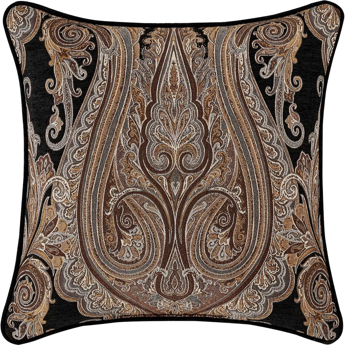 The 20-in. decorative throw pillow from J. Queen New York features a woven black chenille damask with tones of gold, chocolate and graphite. It is finished with black chenille piping and reverses to solid black chenille for added versatility to your decor. Includes one pillow. Style: 264204520SQ.