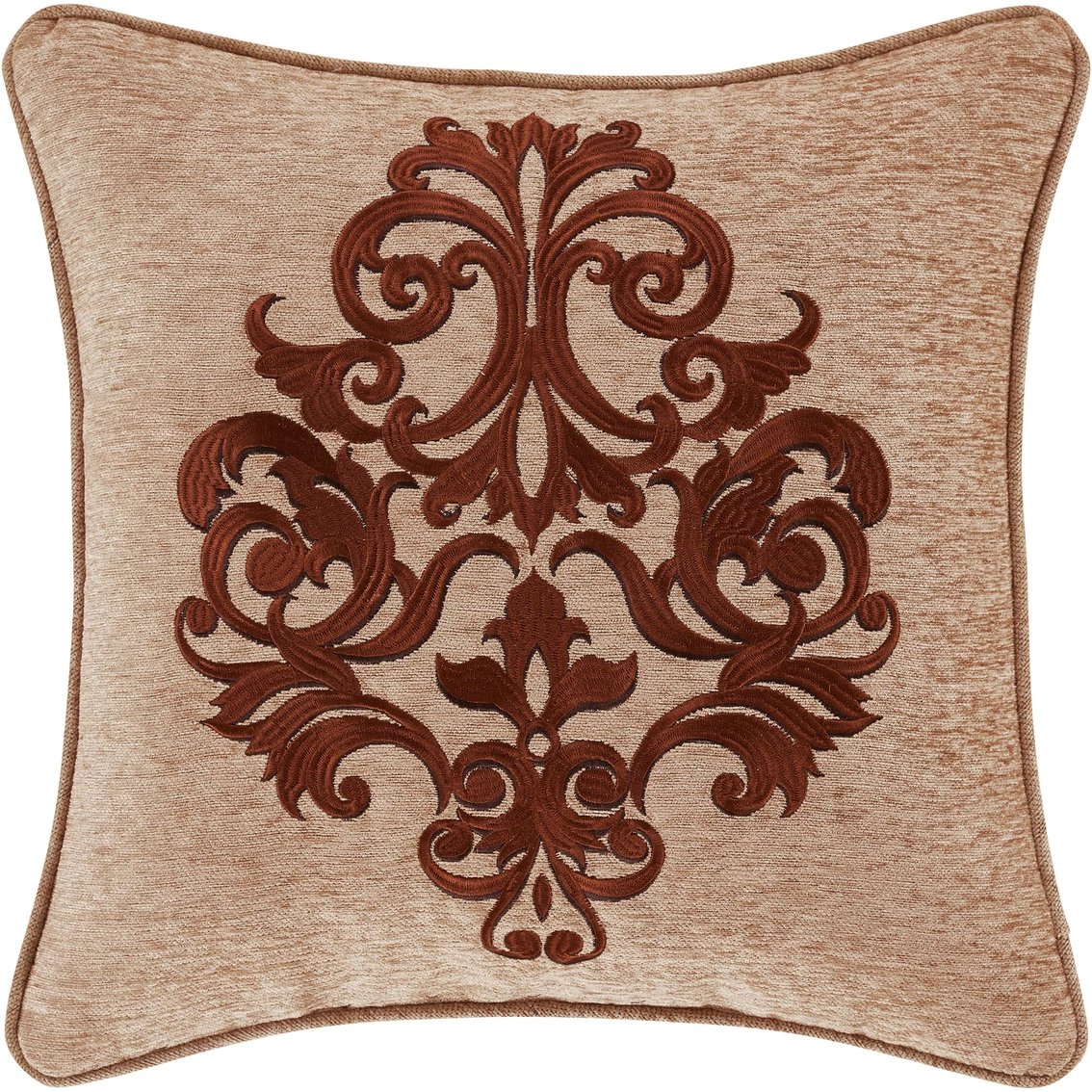 The Luciana 18 in. Decorative Pillow from J. Queen New York is beautifully embroidered with a luxurious spice-colored damask on a beige base cloth. This square pillow brings richness to your traditional bedding set by adding dimension and color. Includes one square decorative pillow. Model: 248310018SQE.