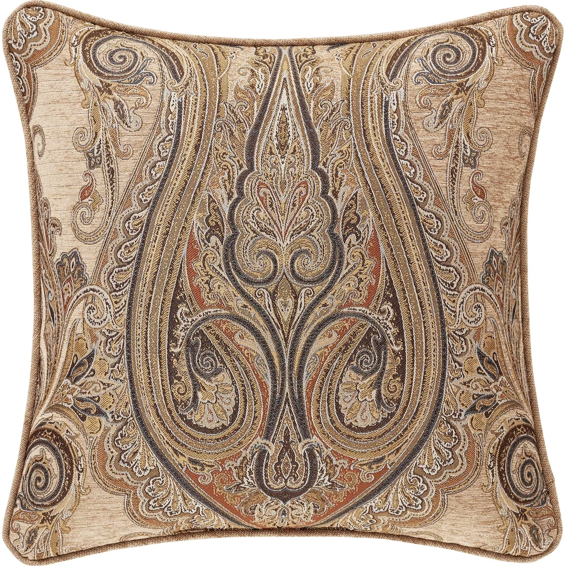 The Luciana Decorative Pillow from J. Queen New York is majestic with it’s graceful design and beautiful lines in shades of gold, beige, blue, spice and cream. Using chenille and twisted yarns, this 20 x 20 in. woven jacquard pillow is luxurious and grand. Style: 248310020SQ.