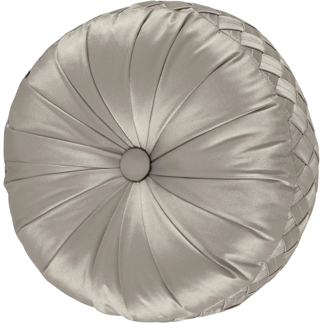 J. Queen New York Satinique Silver Tufted Round Decorative Throw Pillow use the same luxurious satin to create a one of a kind accent to any bedroom decor.