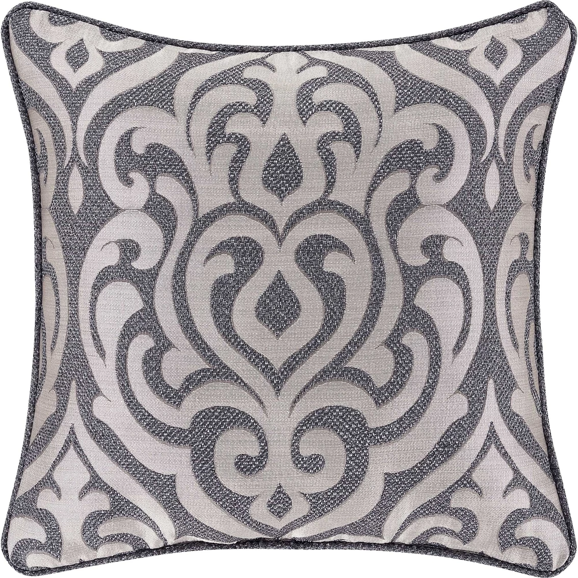 The 20 x 20 in. Tribeca Square Throw Pillow from J. Queen New York is beautiful and bold, with a traditional damask pattern woven into a textured charcoal base cloth.
