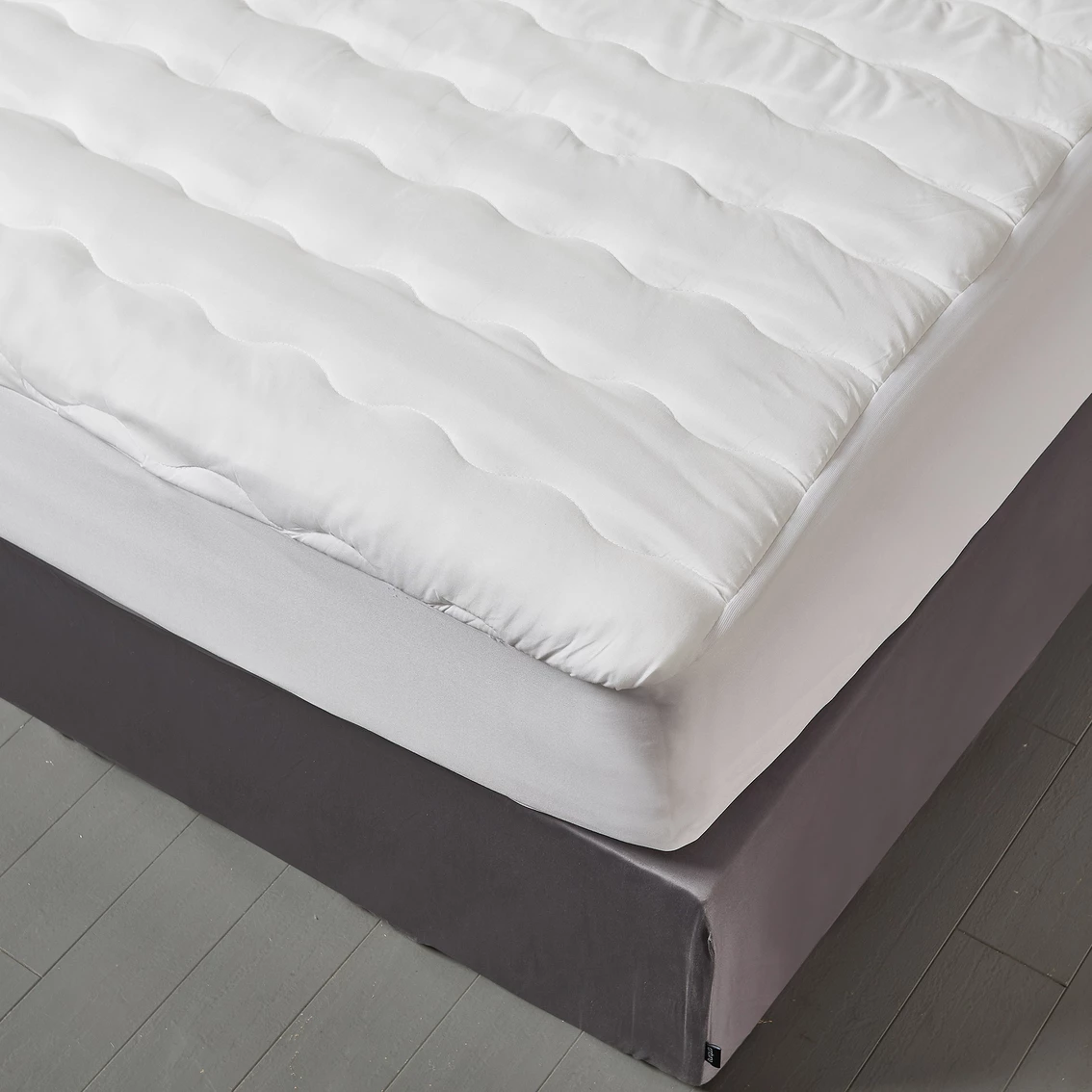This Kathy Ireland Home Essential microfiber waterproof mattress pad is the perfect combination of softness and protection. The microfiber gives you a soft and smooth touch, and the wave channel quilt design provides extra luxury to your mattress. This mattress pad is filled with 4 oz. premium polyester in every square yard to provide support to your body. The laminated backing keeps your mattress clean from spills and stains. The topper’s side wall is a knit skirt that stretches to fit over mattresses up to 18 in. deep and stay firmly in place when released. Style: KI709624.