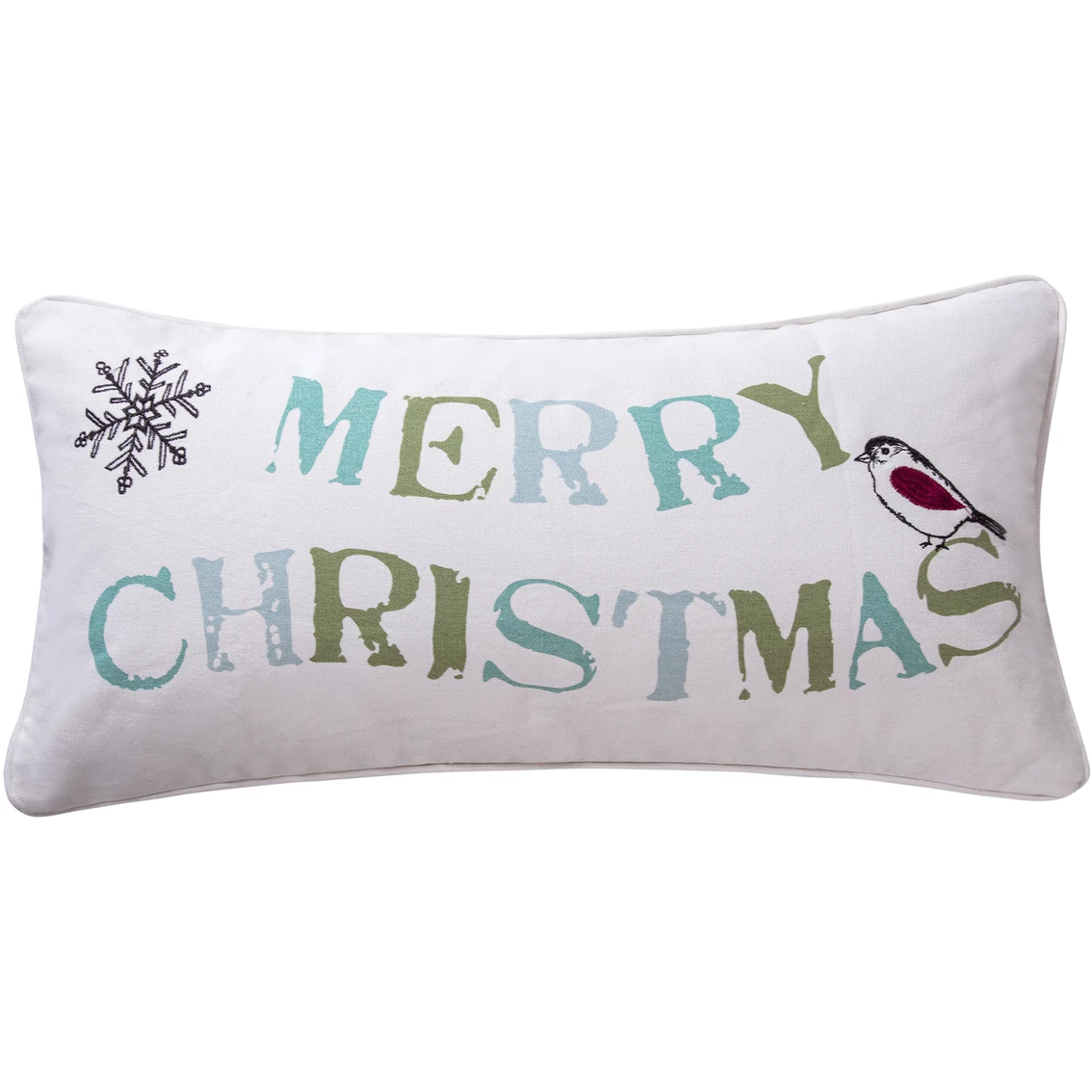 The Merry Christmas decorative pillow matches perfectly with the Levtex Home Holly bedding collection, or can be used to bring the holiday spirit into any room in your home. This pillow is sized at 12 x 24 inches and spreads holiday cheer with “Merry Christmas” printed in holiday colors on a white canvas ground.