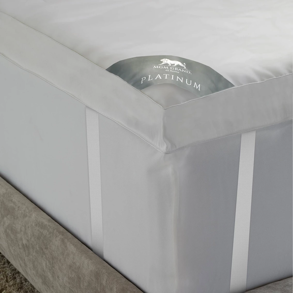 MGM Grand at Home Platinum Collection 5 In. Featherbed will remind you of your stay at the luxurious rooms and suites of the MGM Grand right in your own home. Transform your own bedroom into a relaxing, pampering, hotel-inspired welcome retreat. This featherbed offers the finest combination of luxurious materials and craftsmanship for unparalleled comfort while adding an extraordinary 5 in. layer of softness to your bed.