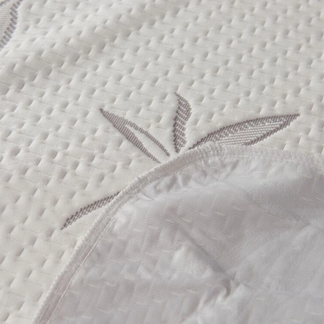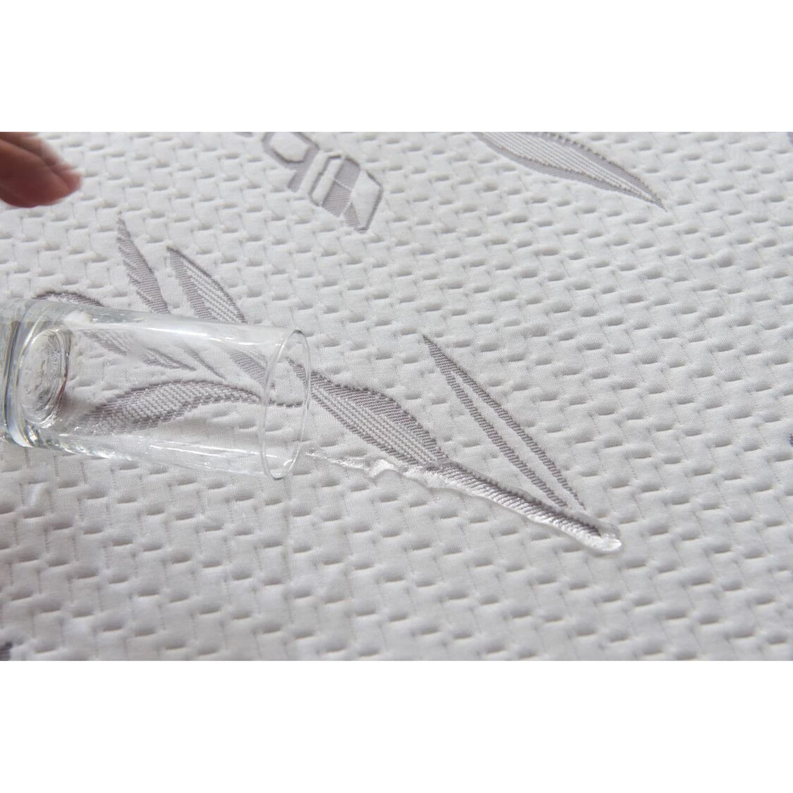 Extend the life of your mattress with the Bamboo Waterproof Mattress Protector, while you sleep clean and fresh. Constructed with an ideal blend of 60% bamboo/40% hypoallergenic microfiber, this comfy top quilted cover is temperature regulating, moisture wicking, as well as being soft and smooth to the touch. 100% waterproof polyurethane back design encases your mattress on 5 sides, blocking liquids, dust mites, contaminates and moisture, while being breathable and quiet. Not your average waterproof protector. You and your mattress deserve more. Can accommodate mattresses up to 18 in. deep. Model: BAMPADQN.