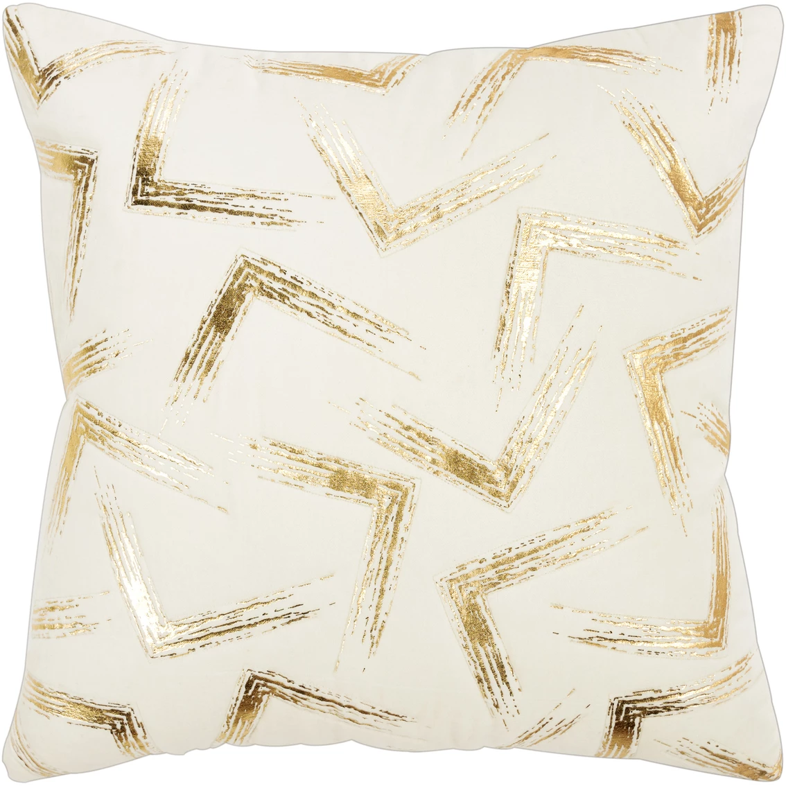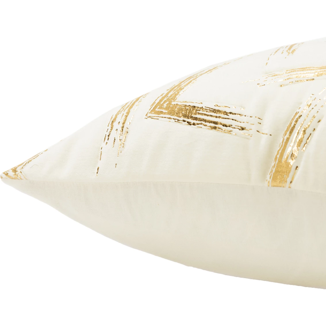 This foil printed pillow from Rizzy Home features a dry brushstroke in gold foil. This pillow is printed on the softest cotton velvet and is accent quilted giving the pattern a soft elevated dimension. Knife edged, this pillow features a coordinating solid back with a hidden zipper closure for ease of fill and cleaning.