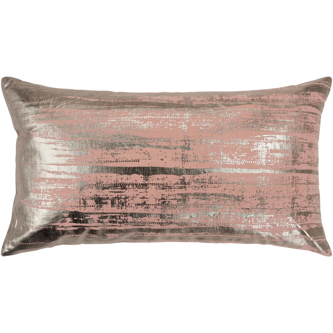 This pillow from Rizzy Home features a horizontal dry brush stroke pattern in silver foil print. The cotton slub on which this pattern is printed gives it a slightly nubby texture yielding a slightly distress printed appearance. Knife edged, this pillow features a coordinating solid back with a hidden zipper closure for ease of fill. It measures 14 in. x 26 in. and has a polyester fill. Model: PILT16562B2001426.