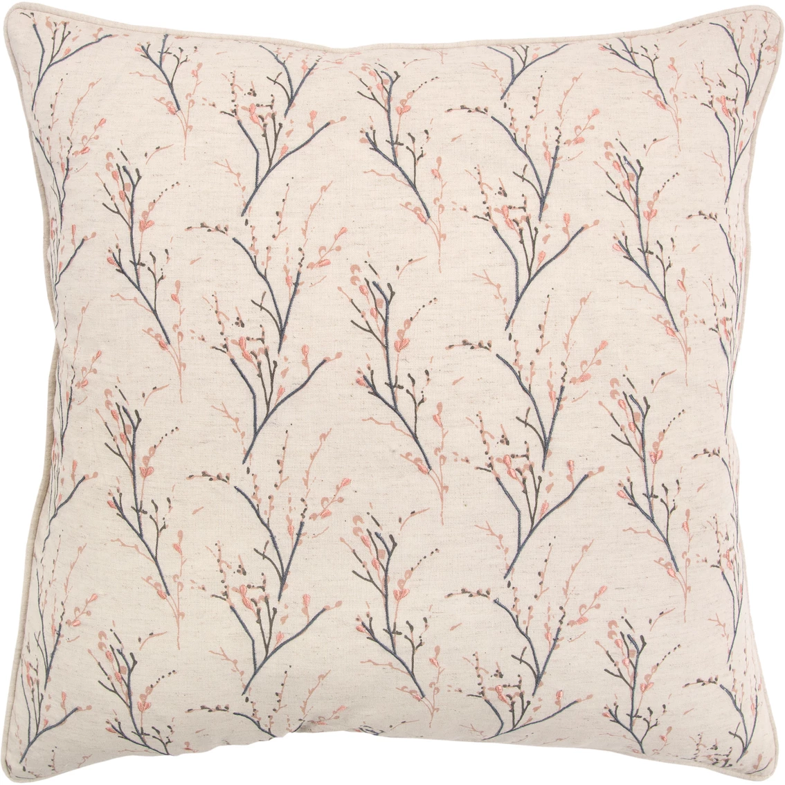 A charming decorative throw pillow from Rizzy Home. Stems printed and accent embroidered surrounded with the tiniest of little buds — also printed and embroidered — give this simple botanical pattern both complexity and meaningfulness. A botanical that isn’t too flowery gives this pattern feminine qualities without screaming skin tight leopard jeggings, red lips and stilettos. This pillow rather speaks to weathered linen, Birkenstocks and soft vintage denim. Self welted with solid coordinating back. Hidden zipper closure. Polyester fill. Size: 20 x 20 inches. Style: PILT16387NT002020.