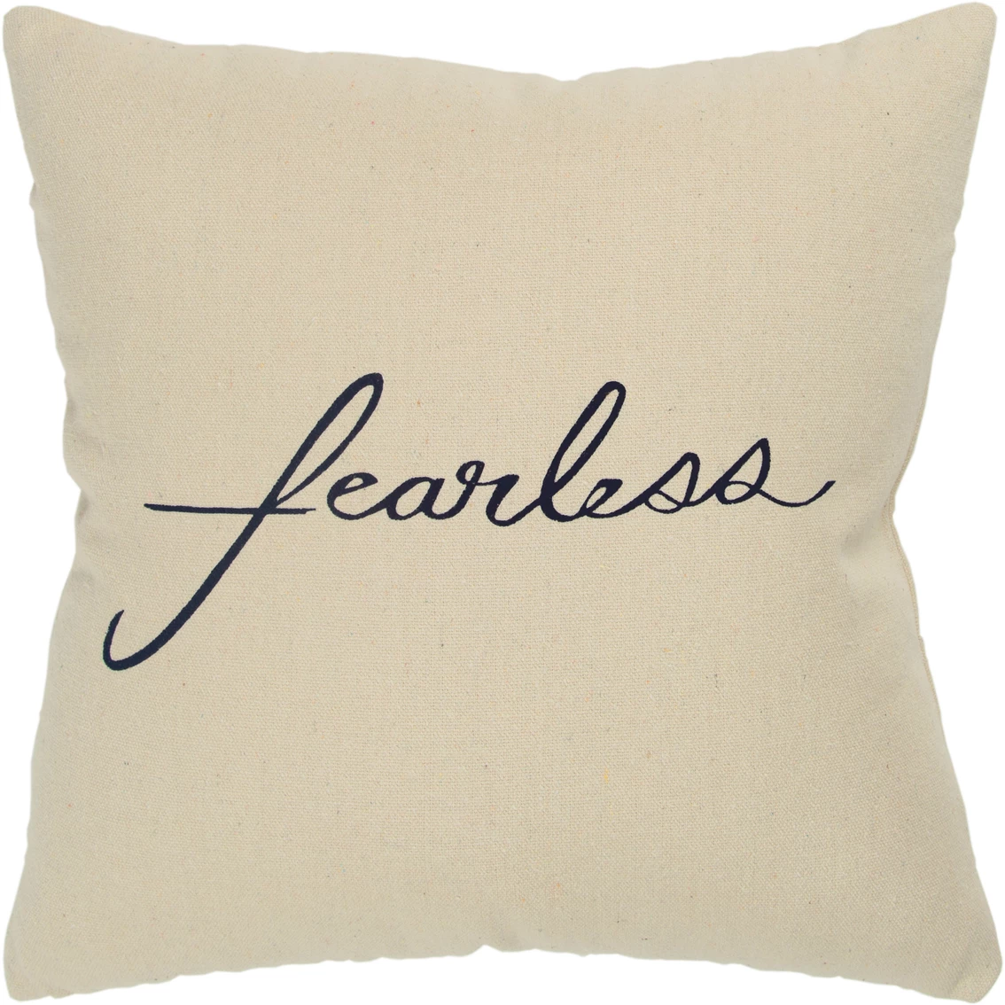 This whimsical pillow from Rizzy Home encourages us to be “fearless.” Inspired by skin art, this pillow is part of the “inked” collection. The background of this pillow is recycled cotton canvas, giving the pillow a light texture. The back is solid of the same and features a hidden zipper closure for ease of fill and cleaning. It has a polyester fill. Model: PILT15863NT002020.