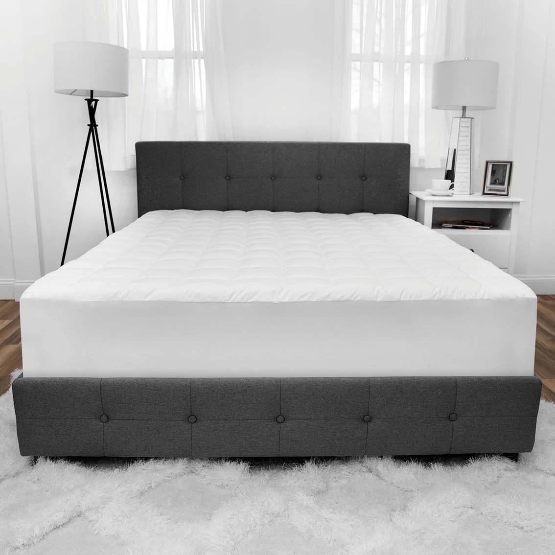 The SensorPEDIC Luxury Top Loft Gel Fiber Mattress Pad is overstuffed with 26 ounces per square yard of antimicrobial gel fiber to give you a restorative night’s sleep. The fill is hand-stuffed into individually stitched, 100% cotton pockets to ensure it stays evenly distributed. The stretch-to-fit bed skirt keeps this hypoallergenic mattress pad secure on mattresses up to 18-inch deep, so your mattress is always clean and comfortable. Model: 17073.