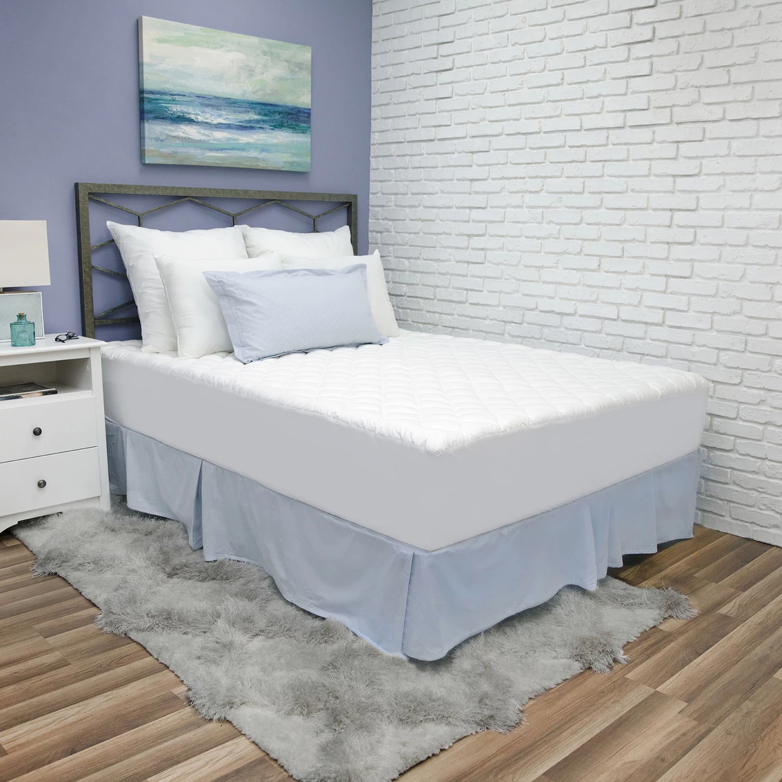 Add a layer of luxury to your mattress with the plush gel microfiber found in this Ultra Loft Mattress Pad from SensorPEDIC. This luxurious mattress pad features a 200 thread count, natural cotton cover for ultra smooth softness and is hand-stuffed with hypoallergenic gel microfiber fill to provide plush comfort while helping to keep your sleeping area fresh and clean. The stretch-to-fit bed skirt ensures this pad stays securely in place throughout the night and fits mattresses up to 18-inches deep. Machine washable for lasting freshness, this Ultra Loft Mattress Pad is sure to provide you with years of refreshing comfort and includes a 5-year warranty for worry-free relaxation. Model: 17078.