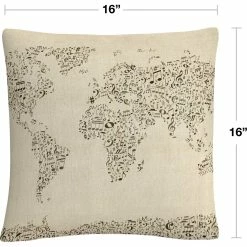 Discount ???? Trademark Fine Art Michael Tompsett Music Note World Map Decorative Throw Pillow ????