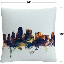 Promo ???? Trademark Fine Art Michael Tompsett Kansas City Skyline Blue Decorative Pillow ????