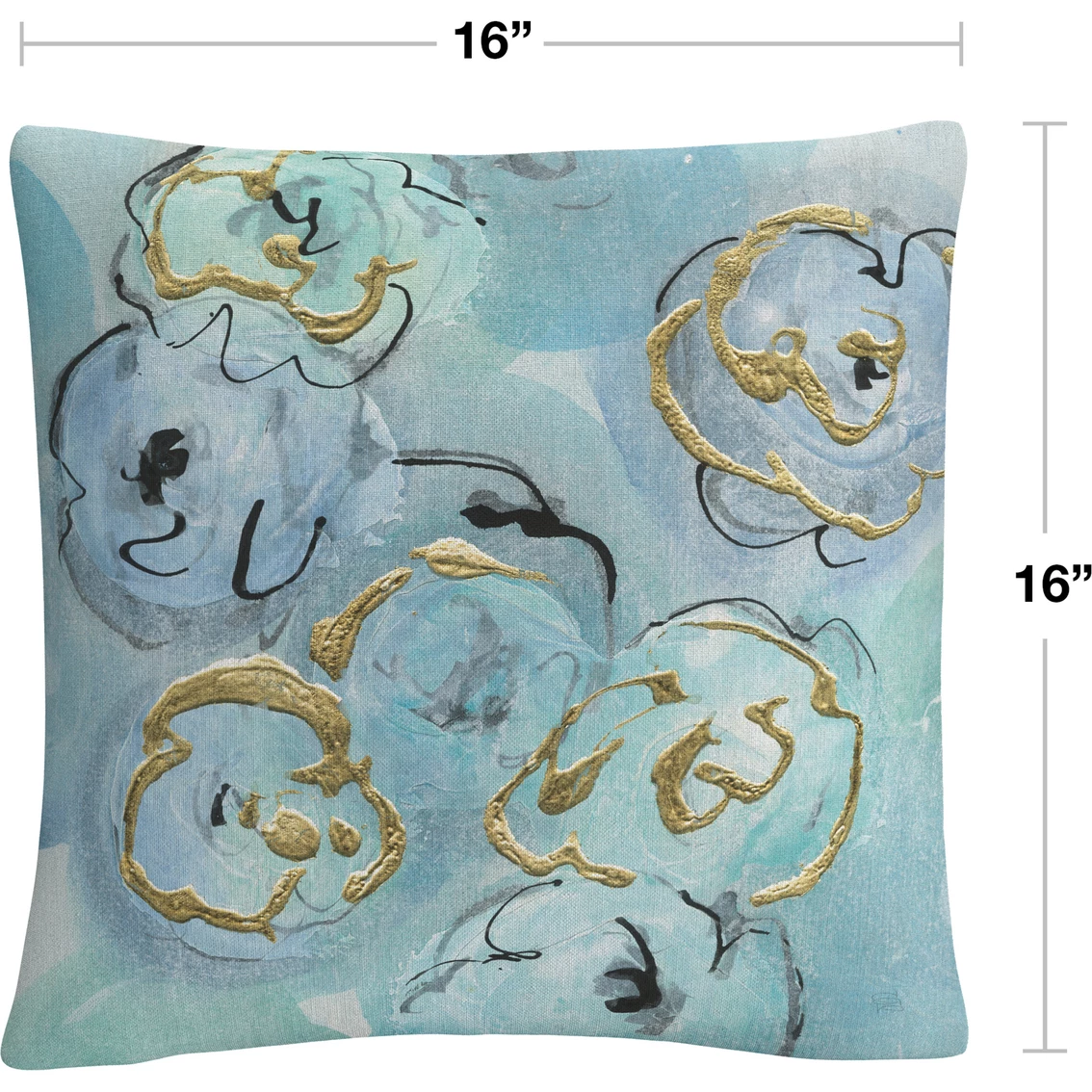 A Trademark Fine Art’s decorative throw pillow featuring a gold and black line drawings of flowers on a teal background. This chic and unique pillows feature a full color printed cover over a 100% American-made polyester pillow insert. The 16 x 16 in. square shape is perfect as a decorative accent on a bed, a statement piece on your favorite armchair, or mixed and matched as your own curated collection on a couch or loveseat. With a variety of high-quality images, one or more of Trademark Fine Art’s carefully crafted pillows will lend any room an aesthetic edge that everyone will notice. Made in USA.
