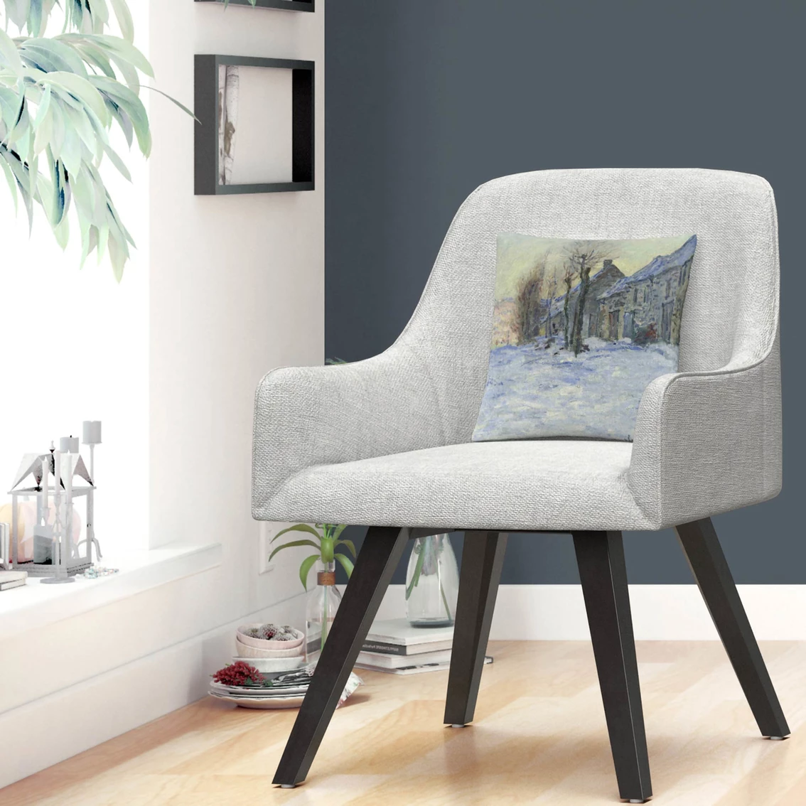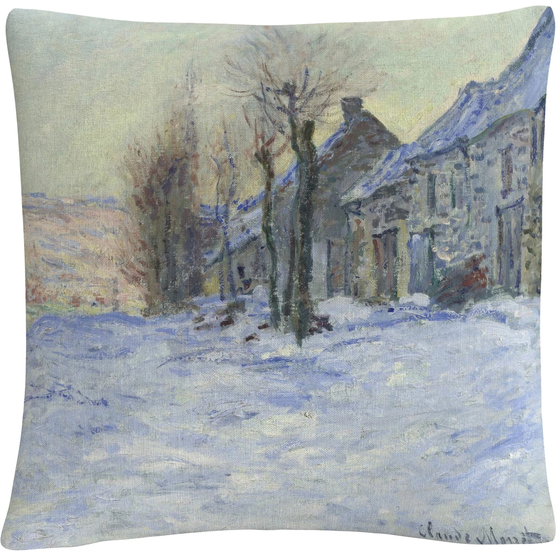 This decorative throw pillow from Trademark Fine Art brings creative comfort and style to any decor in your home or office. It showcases artwork from Claude Monet’s “Lavacourt Under Snow 1878-81,” a traditional art piece featuring a winter landscape of houses. This chic and unique pillow features a full color printed cover over a 100% American-made polyester pillow insert. The 16 in. x 16 in. square shape is perfect as a decorative accent on a bed, a statement piece on your favorite armchair or mixed and matched as your own curated collection on a couch or loveseat. Made in USA. Style: BL0048-PIL1616.