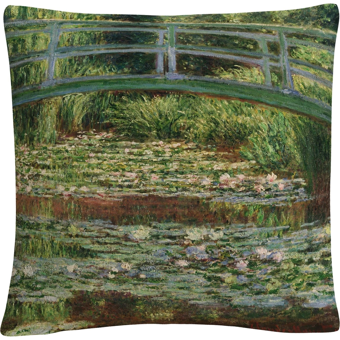 This decorative throw pillow from Trademark Fine Art brings creative comfort and style to any decor in your home or office. It showcases artwork from Claude Monet’s “The Japanese Footbridge,” an impressionistic art piece featuring a landscape of a bridge over water. This chic and unique pillow features a full color printed cover over a 100% American-made polyester pillow insert. The 16 in. x 16 in. square shape is perfect as a decorative accent on a bed, a statement piece on your favorite armchair or mixed and matched as your own curated collection on a couch or loveseat. Made in USA. Style: BL01439-PIL1616.