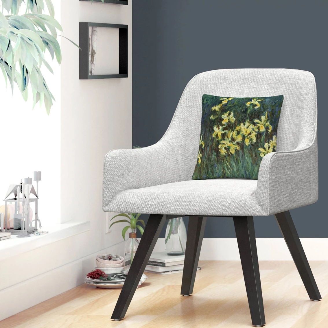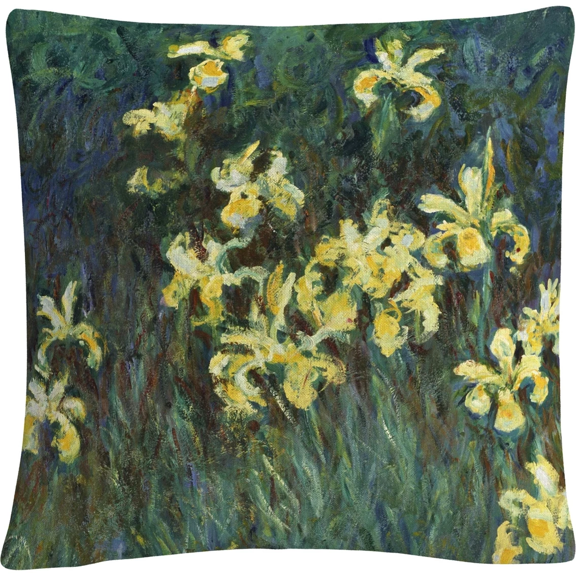 This decorative throw pillow from Trademark Fine Art brings creative comfort and style to any decor in your home or office. It showcases artwork from Claude Monet’s “The Yellow Irises,” an impressionistic art piece featuring a still life image of yellow irises. This chic and unique pillow features a full color printed cover over a 100% American-made polyester pillow insert. The 16 in. x 16 in. square shape is perfect as a decorative accent on a bed, a statement piece on your favorite armchair or mixed and matched as your own curated collection on a couch or loveseat. Made in USA. Style: BL0604-PIL1616.