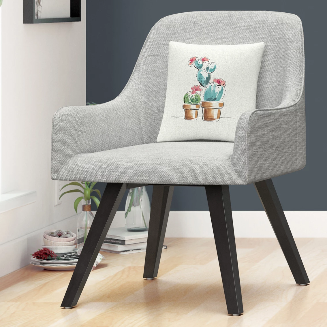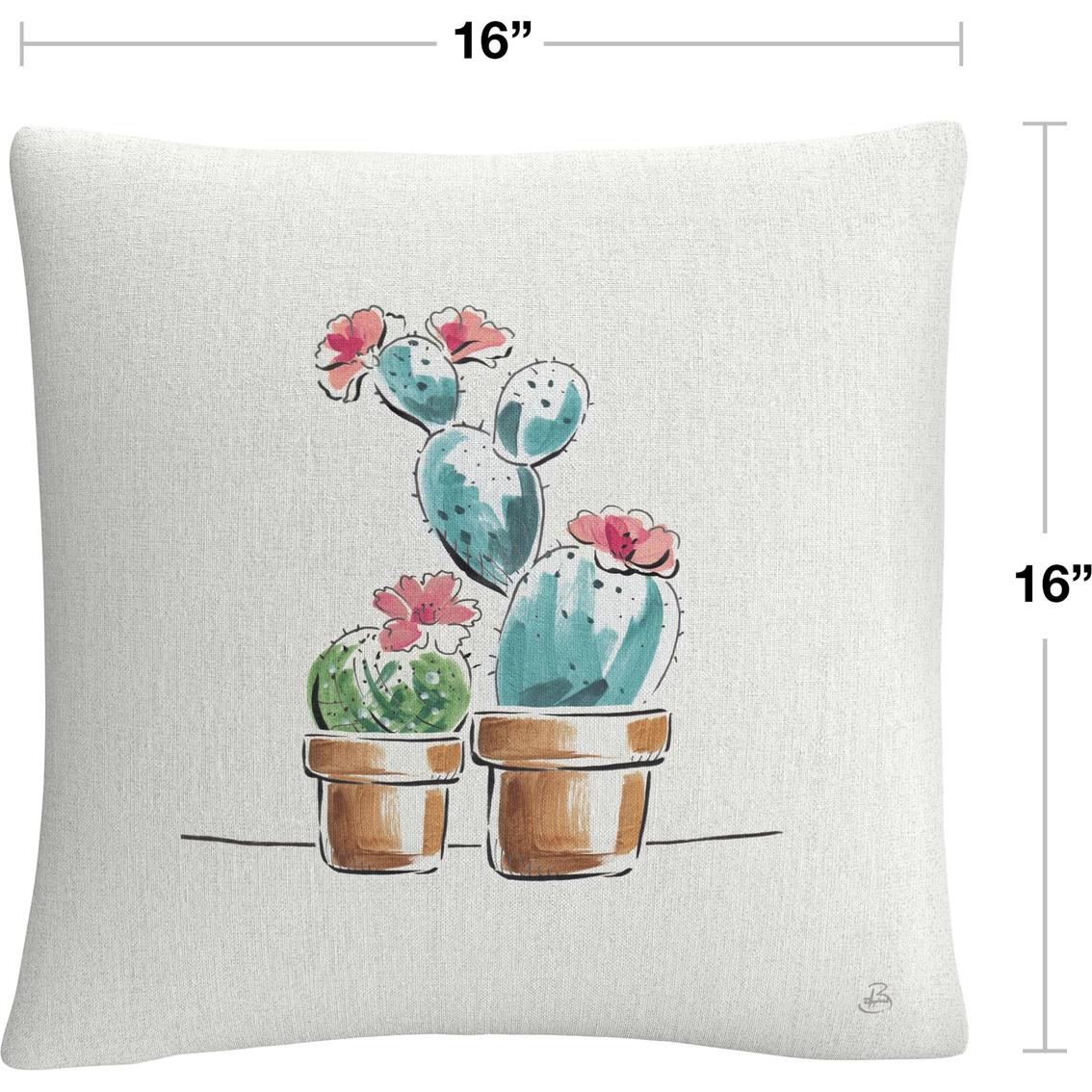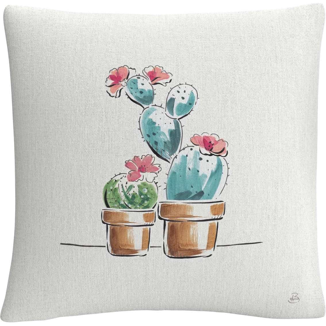 Trademark Fine Art Daphne Brissonnet Desert Bloom V Decorative Throw Pillow is a 16 in. x 16 in. decorative throw pillow that features two cactus in the center of the frame. These chic and unique pillows feature a full color printed cover over a 100% American-made polyester pillow insert. Perfect as a decorative accent on a bed, a statement piece on your favorite armchair, or mixed and matched as your own curated collection on a couch or loveseat. Model: WAP02620-PIL1616.