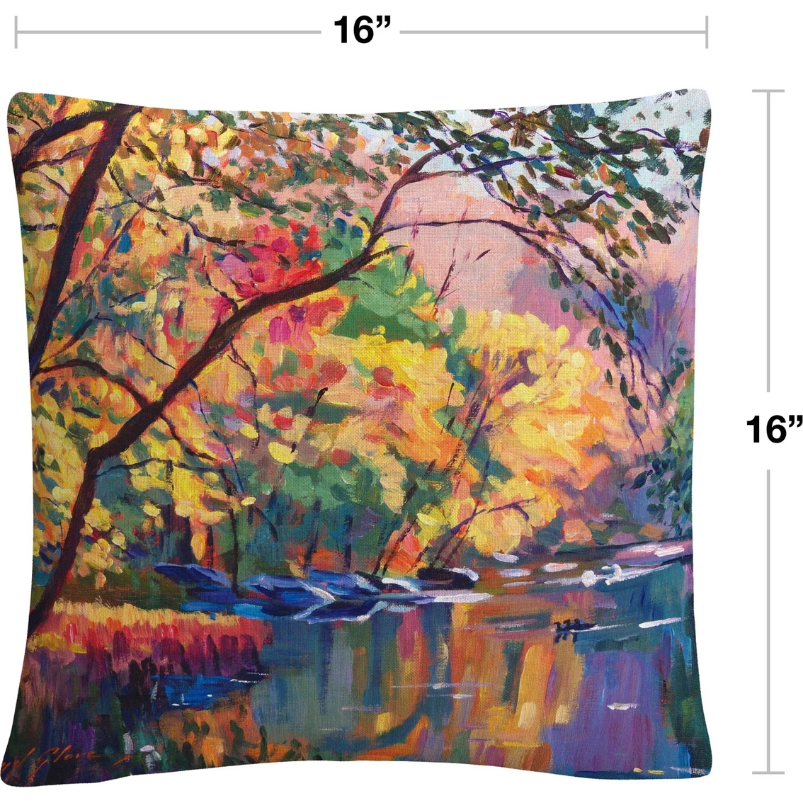 This decorative throw pillow features reflections of trees in a pond. David Lloyd Glover creates masterworks in watercolor on paper, gouache on paper, oil on canvas and acrylic on canvas with equal facility. His original art is highly coveted and very seldom available on the resale market. Whether it’s your favorite classical art masterpiece or a fun, motivational phrase, Trademark Fine Art’s decorative throw pillows bring creative comfort and style to any decor in your home or office. These chic and unique pillows feature a full color printed cover over a 100% American-made polyester pillow insert. The 16 x 16 in. square shape is perfect as a decorative accent on a bed, a statement piece on your favorite armchair, or mixed and matched as your own curated collection on a couch or loveseat. With a variety of high-quality images, one or more of Trademark Fine Art’s carefully crafted pillows will lend any room an aesthetic edge that everyone will notice. Size: 16 x 16 in. Model: DLG0242.