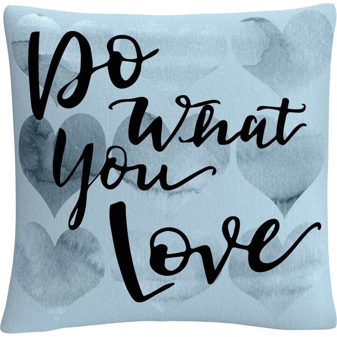 This decorative throw pillow from Trademark Fine Art brings creative comfort and style to any decor in your home or office and will lend any room an aesthetic edge that everyone will notice. It features the phrase “Do What You Love” over blue hearts. This chic and unique pillow features a full color printed cover over a 100% American-made polyester pillow insert. The 16 in. x 16 in. square shape is perfect as a decorative accent on a bed, a statement piece on your favorite armchair or mixed and matched as your own curated collection on a couch or loveseat. Made in USA. Style: ABC0016-PIL1616.