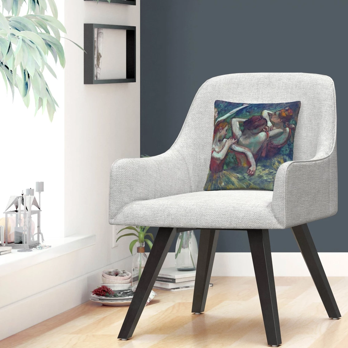 This decorative throw pillow from Trademark Fine Art brings creative comfort and style to any decor in your home or office. It showcases artwork from Edgar Degas’ “Four Dancers 1899,” an impressionistic art piece featuring a portrait of four dancers. This chic and unique pillow features a full color printed cover over a 100% American-made polyester pillow insert. The 16 in. x 16 in. square shape is perfect as a decorative accent on a bed, a statement piece on your favorite armchair or mixed and matched as your own curated collection on a couch or loveseat. Made in USA. Style: BL01347-PIL1616.