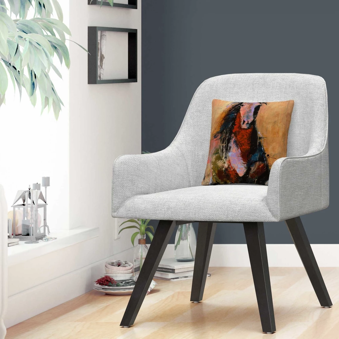This chic and unique decorative throw pillow from Trademark Fine Art features ‘Golden Horse,’ an expressive painting of a horse on a golden background by artist Manor Shadian. Pillow includes a full color printed cover over a 100% American-made polyester pillow insert. The 16 x 16 in. square shape is perfect as a decorative accent on a bed, a statement piece on your favorite armchair or mixed and matched as your own curated collection on a couch or loveseat.