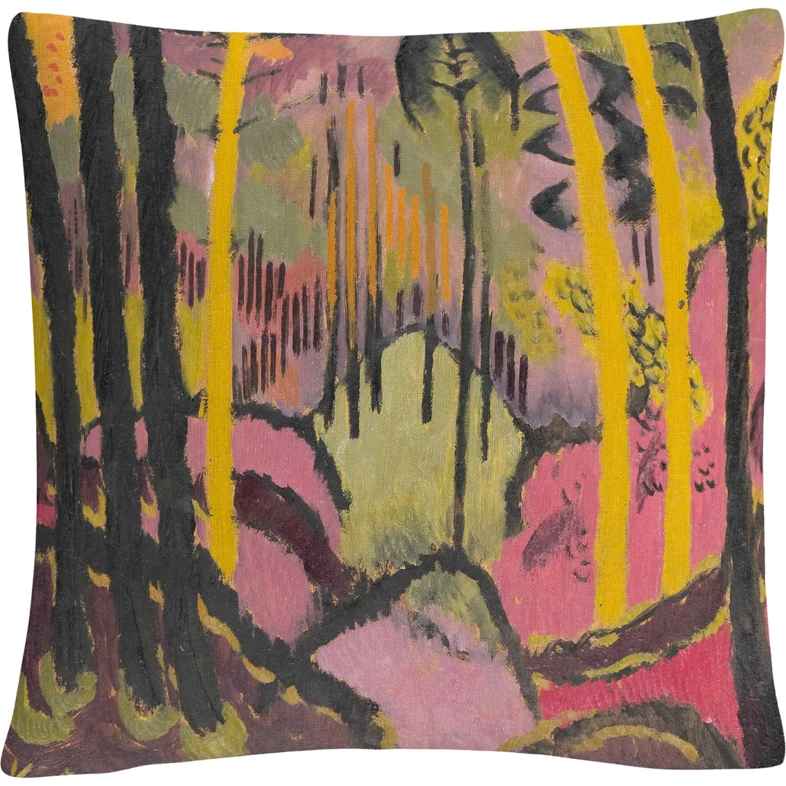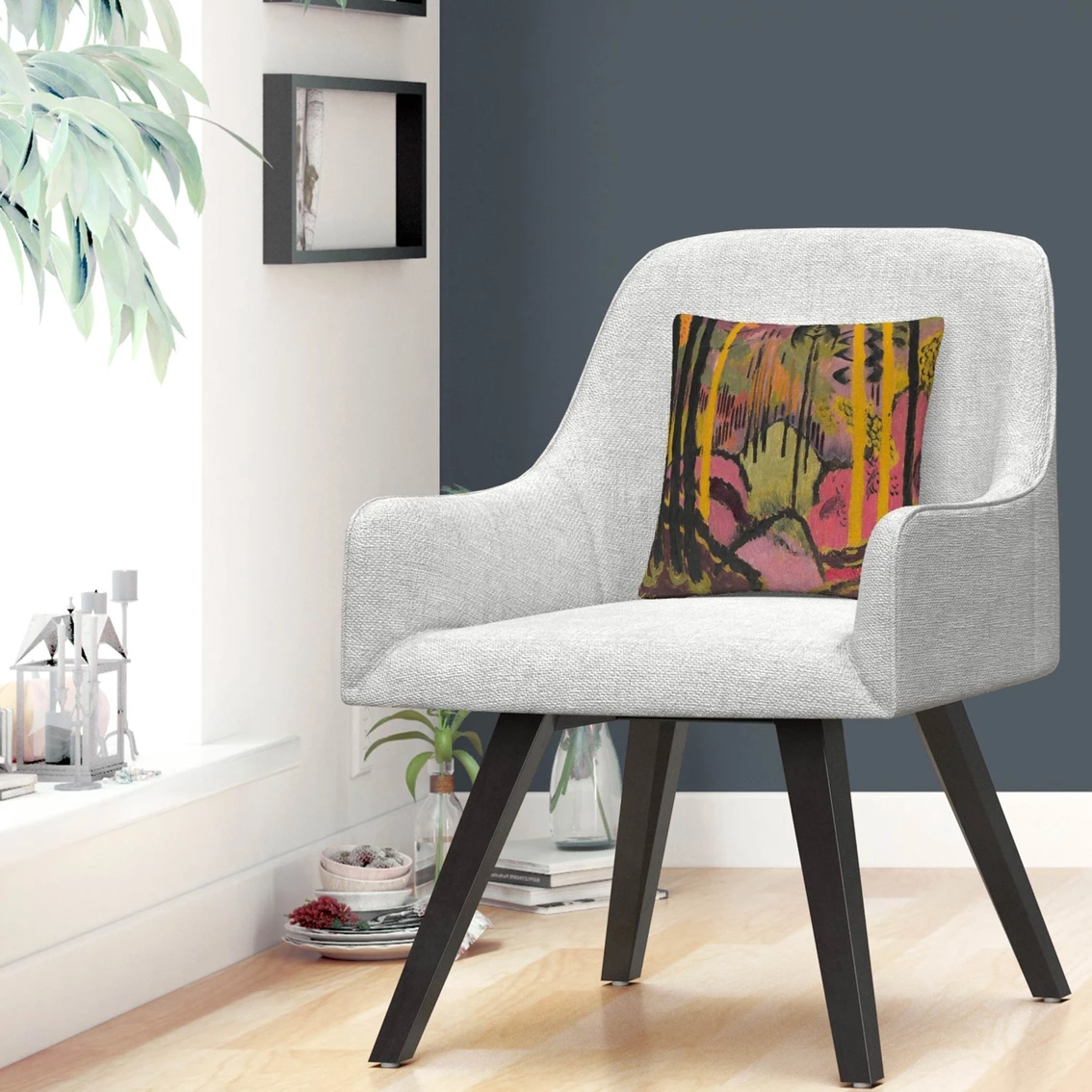 This decorative throw pillow features a colorful abstract scene filling the frame.