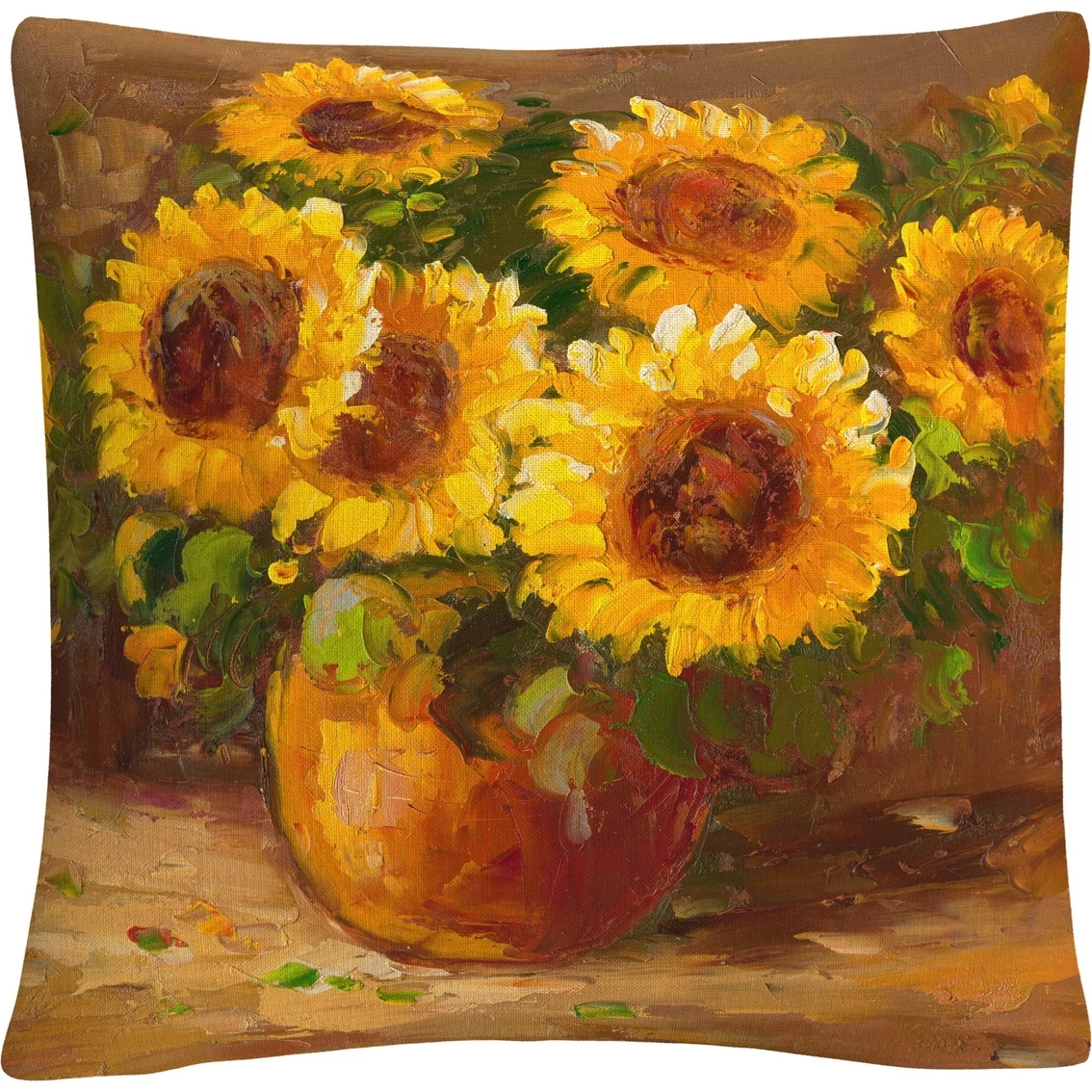 This decorative throw pillow features sunflowers in a vase. With a variety of high-quality images, one or more of Trademark Fine Art’s carefully crafted pillows will lend any room an aesthetic edge that everyone will notice. Masters Fine Art is a company that travels around the world to bring the best in fine art from outstanding artists from different lands. They believe that art is the soul of the world, that it represents our human essence.