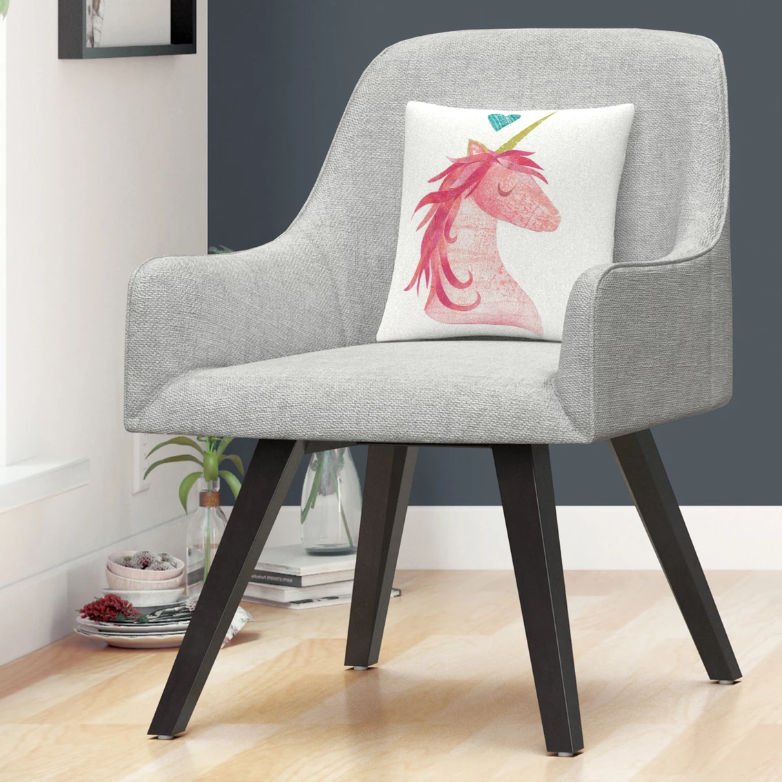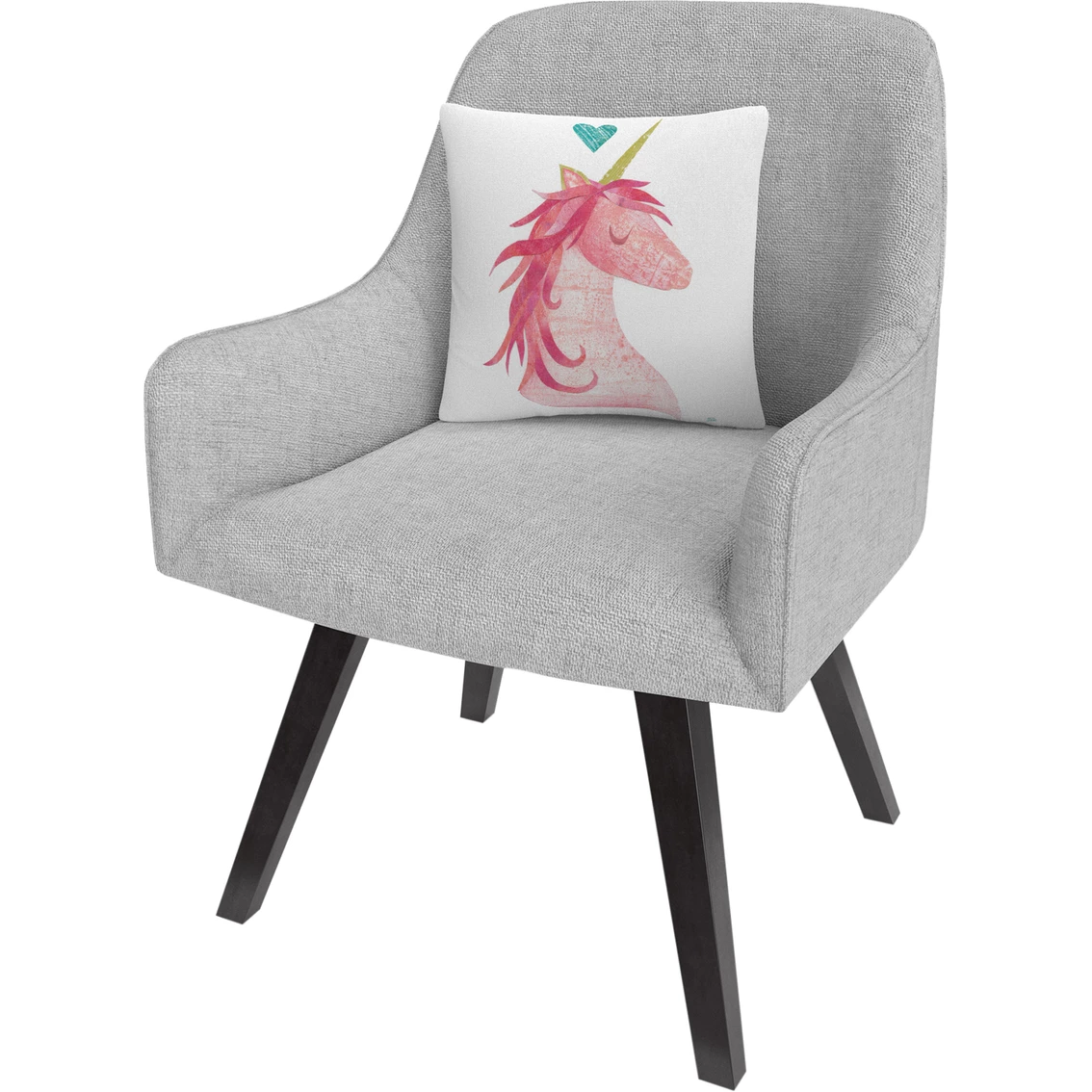 Trademark Fine Art Melissa Averinos Unicorn Magic I Heart Decorative Throw Pillow is a 16 in. x 16 in. decorative throw pillow that features a blue heart above a pink unicorn. These chic and unique pillows feature a full color printed cover over a 100% American-made polyester pillow insert. Perfect as a decorative accent on a bed, a statement piece on your favorite armchair, or mixed and matched as your own curated collection on a couch or loveseat. Model: WAP01329-PIL1616.