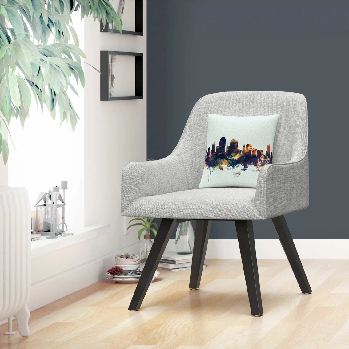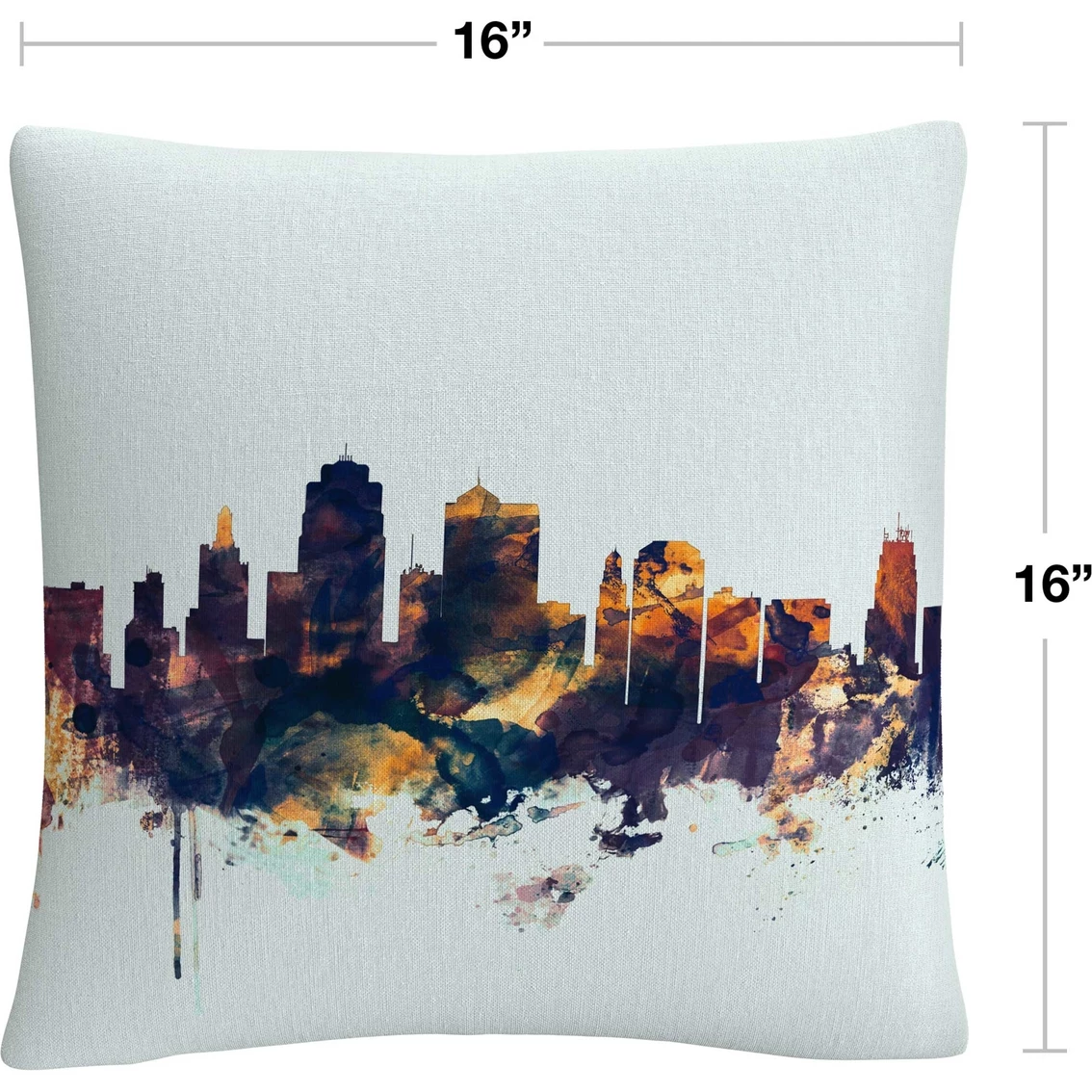 This chic and unique decorative throw pillow from Trademark Fine Art features a watercolor skyline of Kansas City by artist Michael Tompsett. Pillow includes a full color printed cover over a 100% American-made polyester pillow insert. The 16 x 16 in. square shape is perfect as a decorative accent on a bed, a statement piece on your favorite armchair or mixed and matched as your own curated collection on a couch or loveseat.