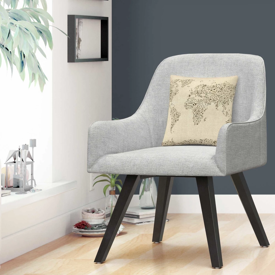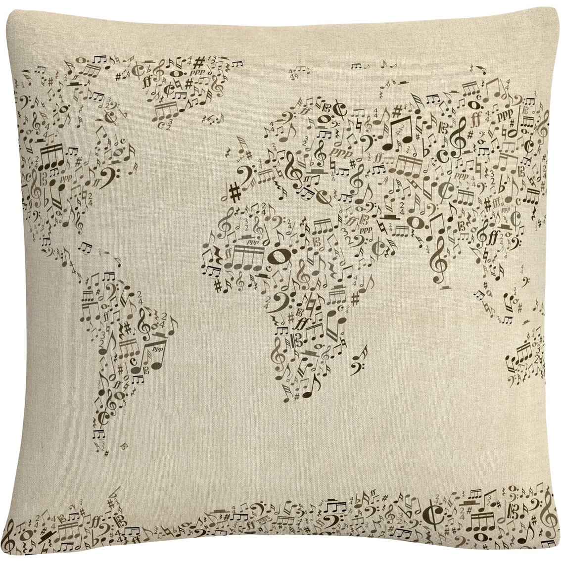 This chic and unique decorative throw pillow from Trademark Fine Art features ‘Music Note World Map’ by artist Michael Tompsett. Pillow includes a full color printed cover over a 100% American-made polyester pillow insert. The 16 x 16 in. square shape is perfect as a decorative accent on a bed, a statement piece on your favorite armchair or mixed and matched as your own curated collection on a couch or loveseat.