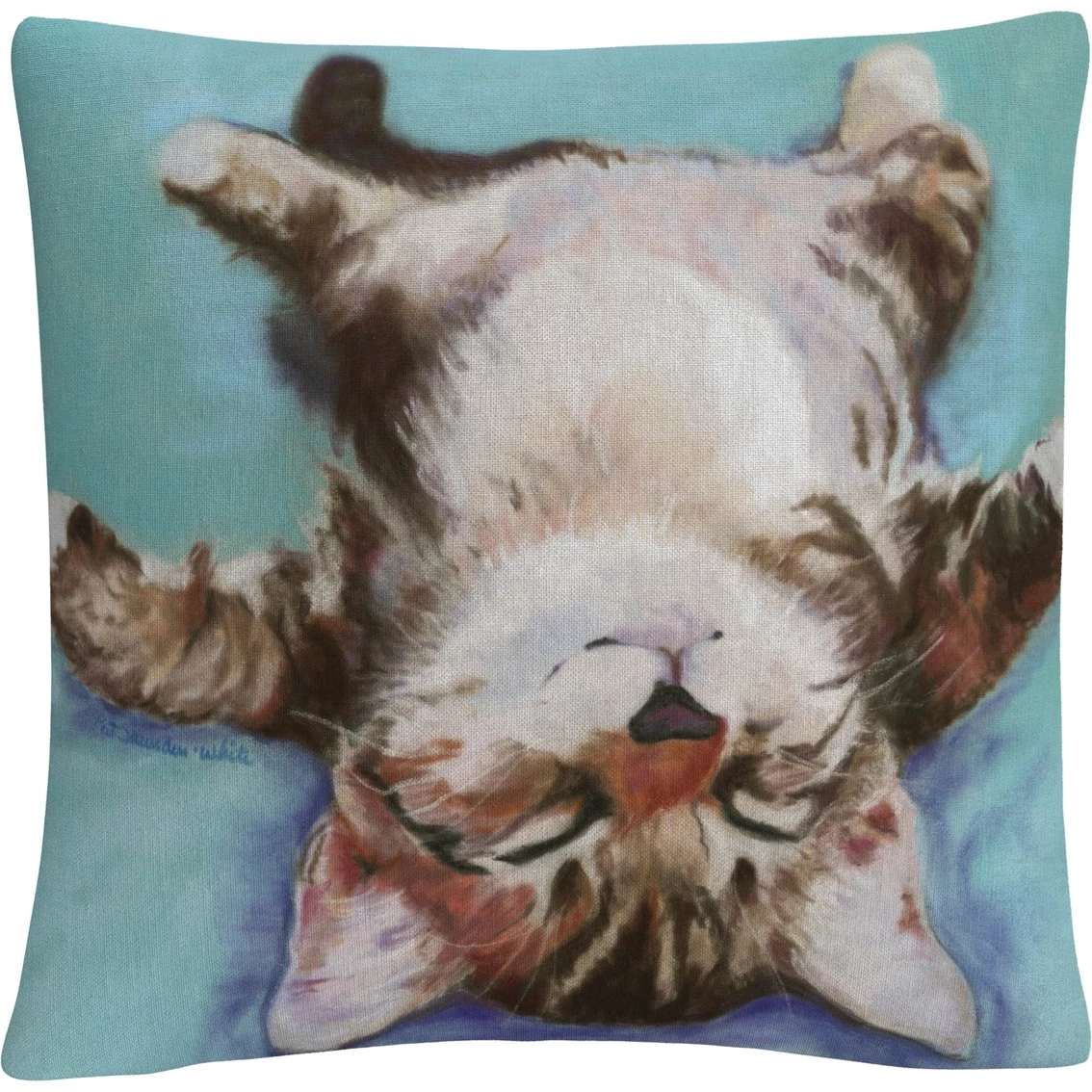 This decorative throw pillow features a kitten lying on its back. Instantly recognizable are the brilliant, saturated colors of Pat Saunders’ paintings. Pat brings an element of spontaneity, boldness and humor into a genre that is often stiff and photo realistic. With a variety of high-quality images, one or more of Trademark Fine Art’s carefully crafted pillows will lend any room an aesthetic edge that everyone will notice.
