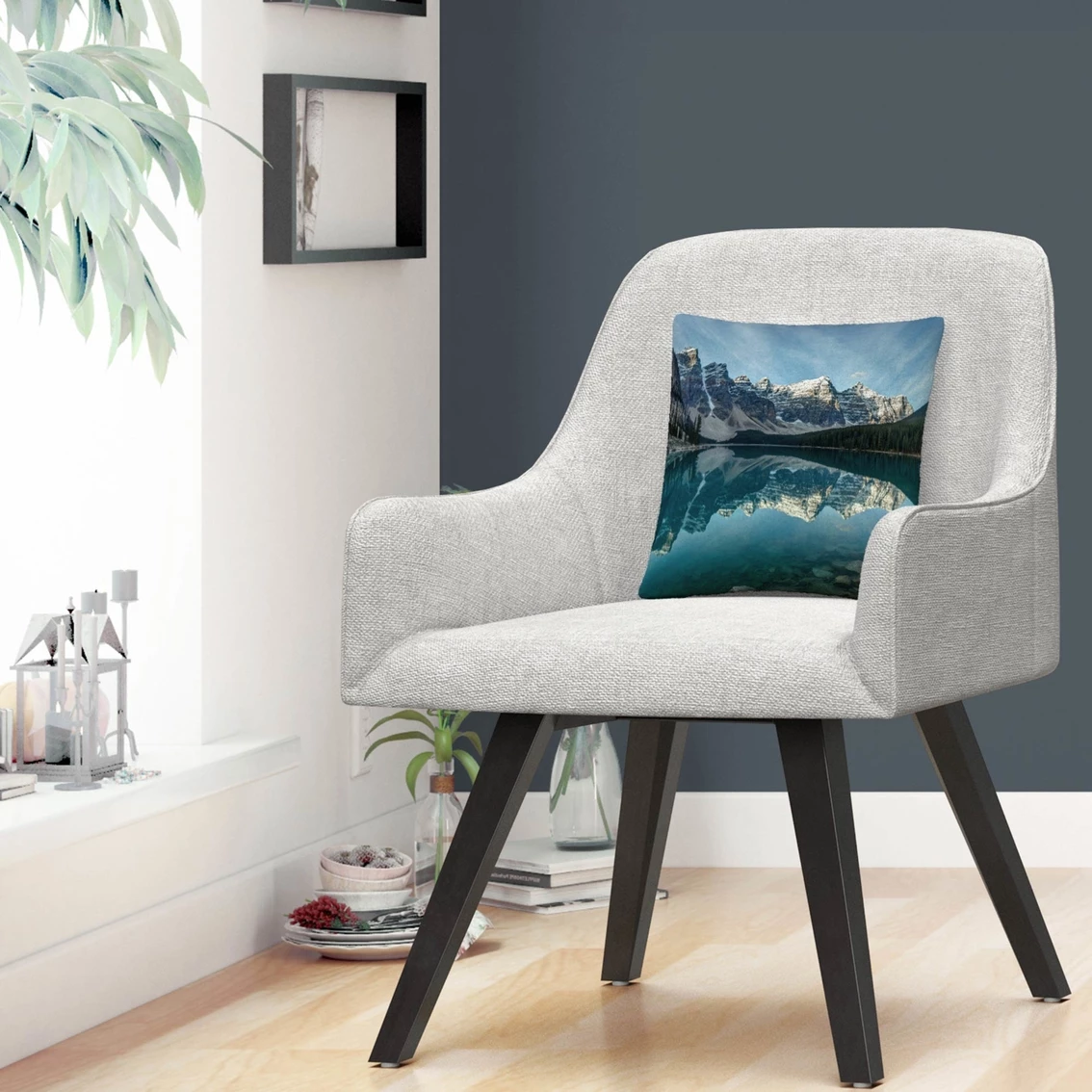 This decorative throw pillow features the mountains and trees around a lake mirrored in its still surface. Pierre Leclerc has a unique style conveys simple, individual compositions with intense attention to detail. Nature is his inspiration and favorite visual playground. With a variety of high-quality images, one or more of Trademark Fine Art’s carefully crafted pillows will lend any room an aesthetic edge that everyone will notice.