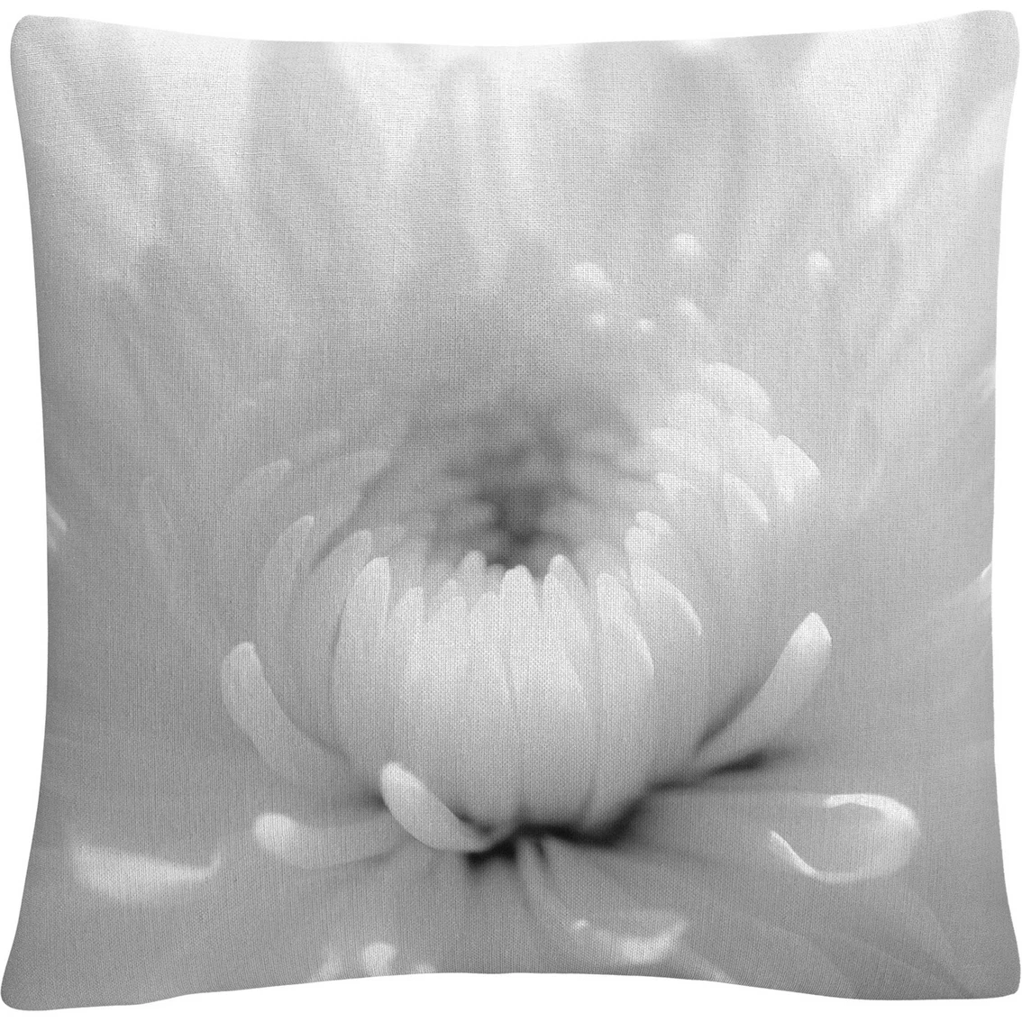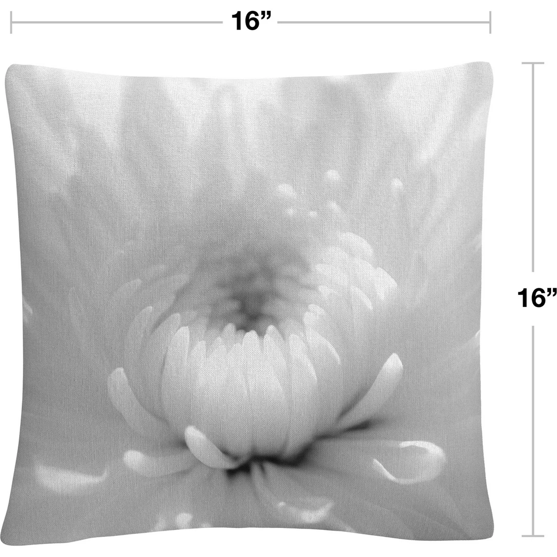 This decorative throw pillow from Trademark Fine Art features a black and white photograph of a flower, shot through an infrared lens.