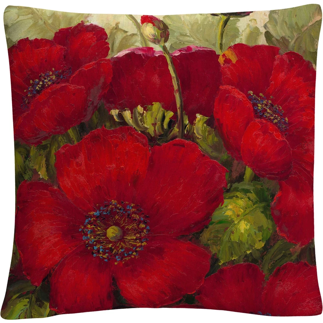 This decorative throw pillow from Trademark Fine Art features red poppies in a contemporary style by artist Rio.