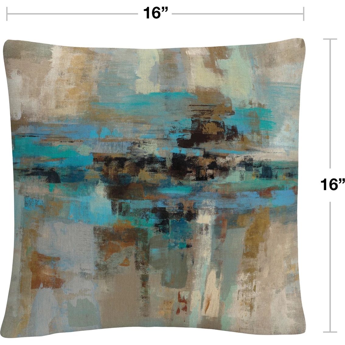 Trademark Fine Art Silvia Vassileva Morning Fjord Decorative Throw Pillow is a 16 in. x 16 in. decorative throw pillow that features an abstract composition of blue. These chic and unique pillows feature a full color printed cover over a 100% American-made polyester pillow insert. Perfect as a decorative accent on a bed, a statement piece on your favorite armchair, or mixed and matched as your own curated collection on a couch or loveseat. Model: WAP0260-PIL1616.