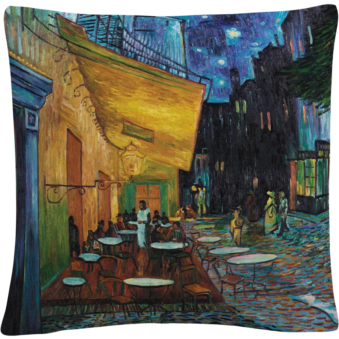 This chic and unique decorative throw pillow from Trademark Fine Art features ‘Cafe Terrace’ by artist Vincent van Gogh. Pillow includes a full color printed cover over a 100% American-made polyester pillow insert. The 16 x 16 in. square shape is perfect as a decorative accent on a bed, a statement piece on your favorite armchair or mixed and matched as your own curated collection on a couch or loveseat.