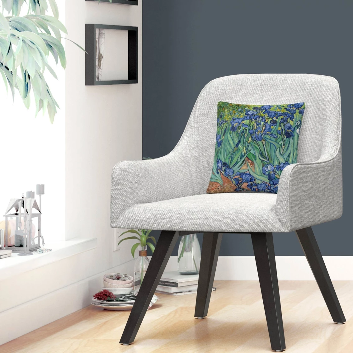 This decorative throw pillow from Trademark Fine Art brings creative comfort and style to any decor in your home or office. It showcases artwork from Vincent van Gogh’s “Irises,” an impressionistic art piece featuring irises in a garden. This chic and unique pillow features a full color printed cover over a 100% American-made polyester pillow insert. The 16 in. x 16 in. square shape is perfect as a decorative accent on a bed, a statement piece on your favorite armchair or mixed and matched as your own curated collection on a couch or loveseat. Made in USA. Style: BL0317-PIL1616.