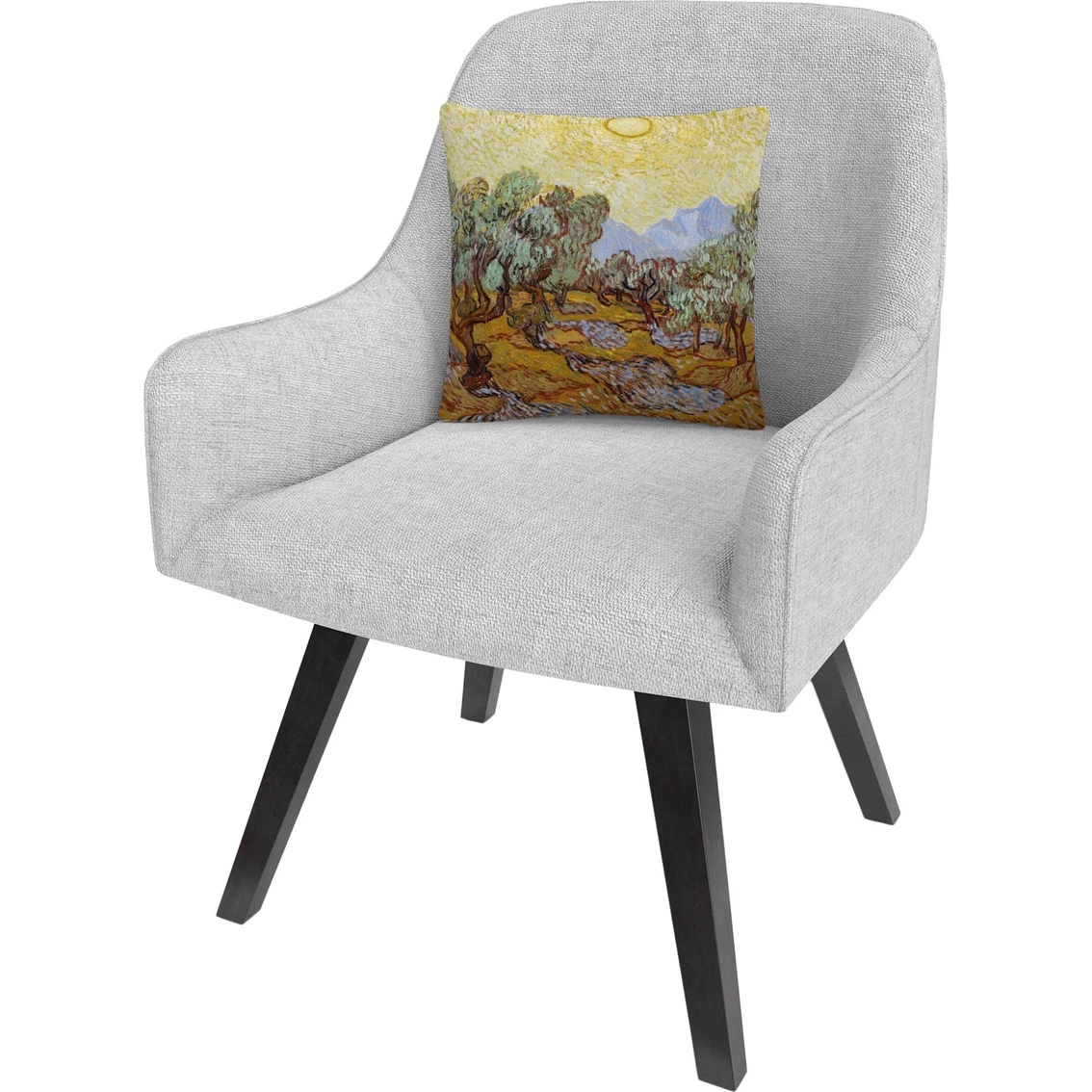 This decorative throw pillow from Trademark Fine Art brings creative comfort and style to any decor in your home or office. It showcases artwork from Vincent van Gogh’s “Olive Trees,” a post-impressionism art piece featuring a landscape of trees and a bright yellow sun. This chic and unique pillow features a full color printed cover over a 100% American-made polyester pillow insert. The 16 in. x 16 in. square shape is perfect as a decorative accent on a bed, a statement piece on your favorite armchair or mixed and matched as your own curated collection on a couch or loveseat. Made in USA. Style: BL01378-PIL1616.
