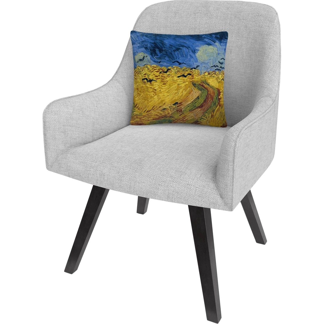 This decorative throw pillow from Trademark Fine Art brings creative comfort and style to any decor in your home or office. It showcases artwork from Vincent van Gogh’s “Wheatfield With Crows,” an impressionistic art piece featuring a landscape of a wheat field. This chic and unique pillow features a full color printed cover over a 100% American-made polyester pillow insert. The 16 in. x 16 in. square shape is perfect as a decorative accent on a bed, a statement piece on your favorite armchair or mixed and matched as your own curated collection on a couch or loveseat. Made in USA. Style: M222-PIL1616.